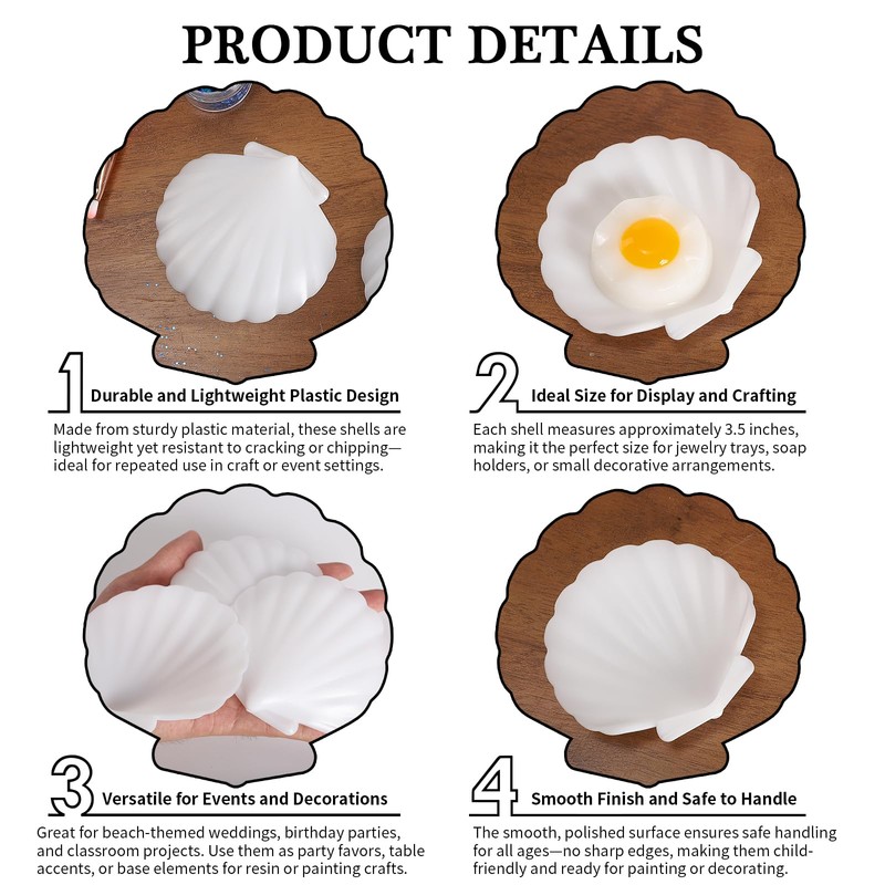 Brilucky 10 Pcs Large Plastic Scallop Shells,3.5'' White Faux Seashells for Crafts,DIY Painting,Sea Shells Beach Weddings Decorations – Bulk Artificial Shells for Ocean-Themed Parties and Home Decor