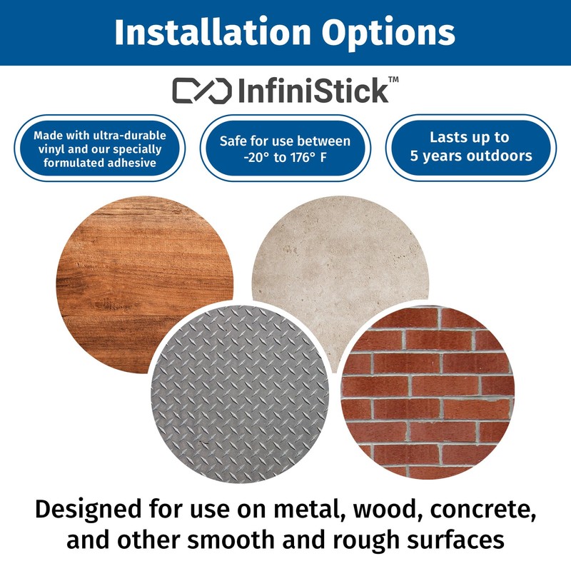 - DURABLE MATERIAL: Crafted from 3.5 mil InfiniStick vinyl for strong adhesion and long-lasting durability.