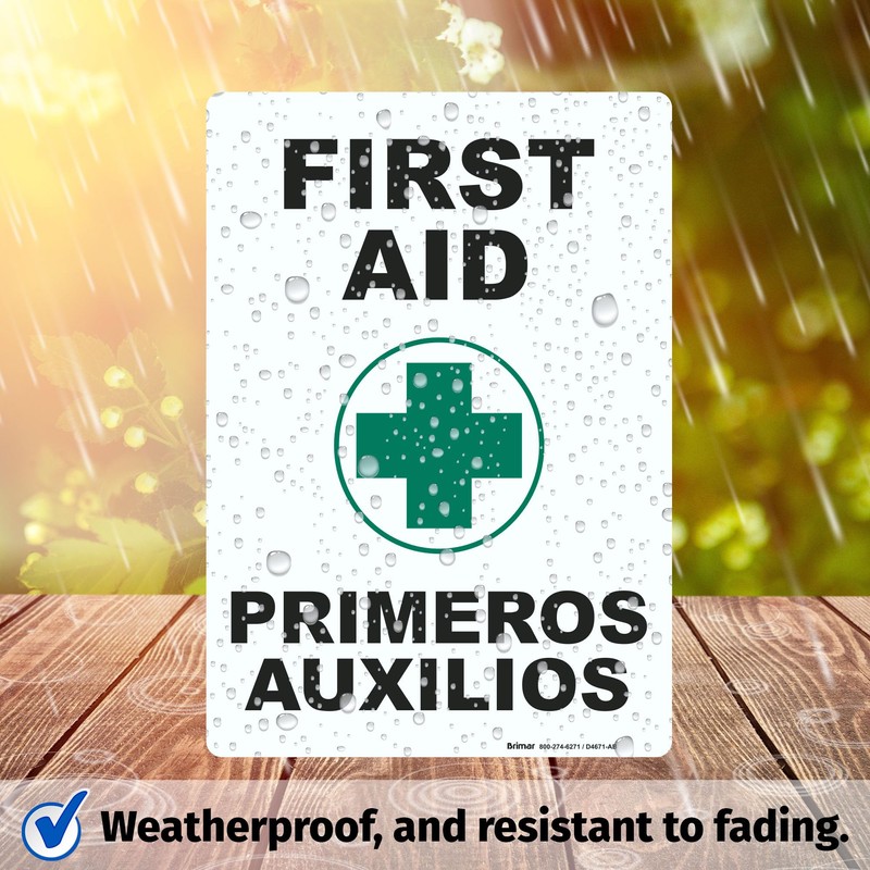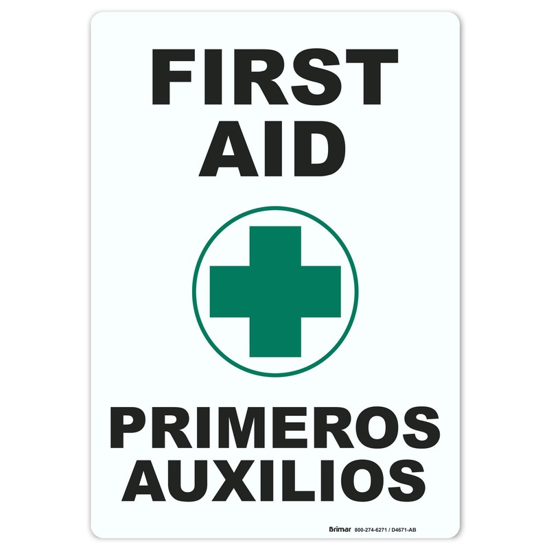 - BILINGUAL MESSAGE: Includes both "First Aid" and "Primeros Auxilios" for clear communication in English and Spanish.
