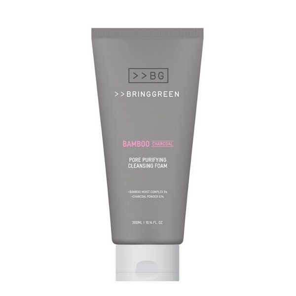 🌸 BRING GREEN Bamboo Charcoal Pore Purifying Cleansing Foam helps clean pores and remove blackheads while keeping the skin hydrated.