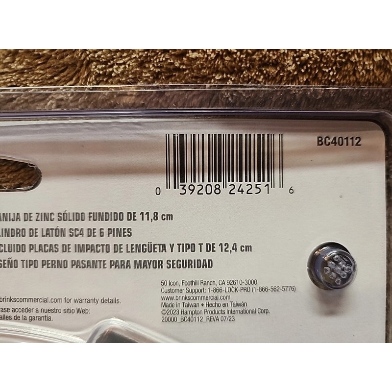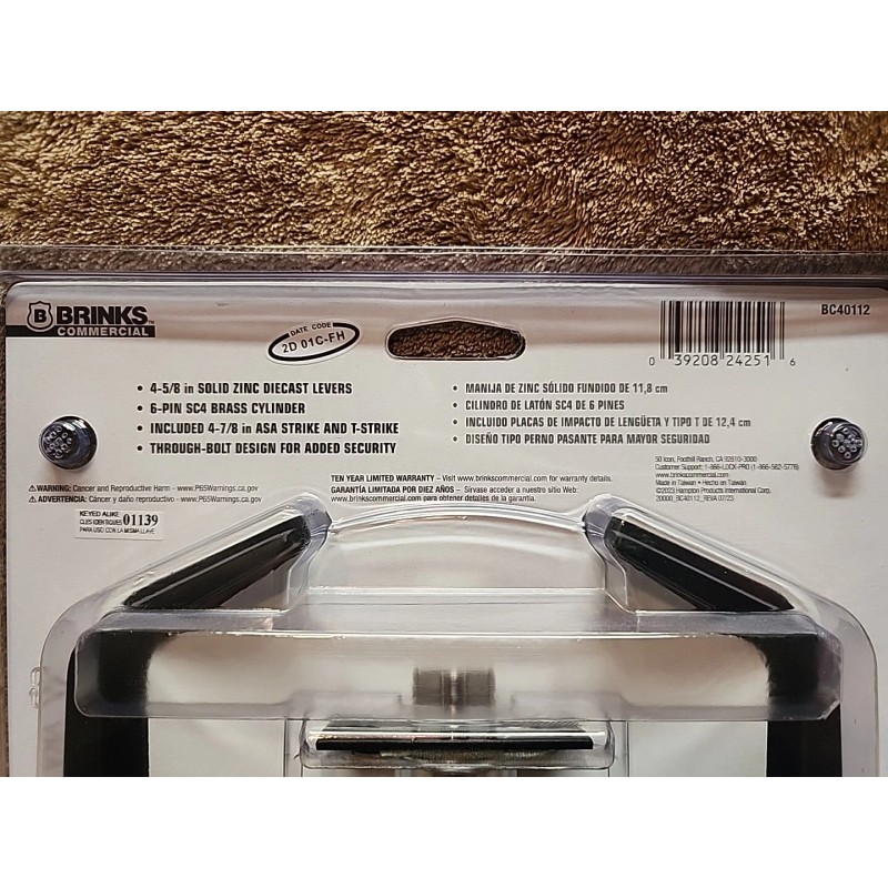 BRINKS Heavy Duty Commercial Keyed Entry Lever Matte Black. (Keyed Alike Inv.)