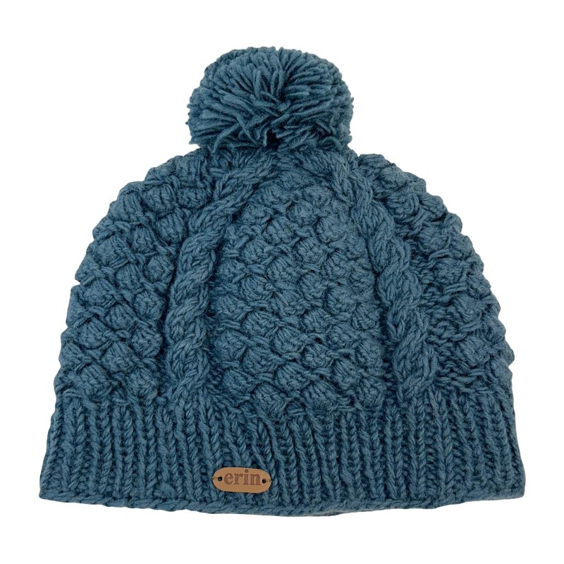 - Irish Womens Beanie with Pom - Designed in Ireland, this womens winter hat is soft to the touch and knitted in a blackberry stitch.
