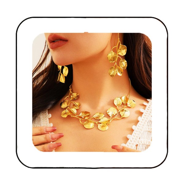 Brishow Gold Leaf Necklace and Earring Set Statement Necklace Set Greek Leaf Jewelry Set for Women