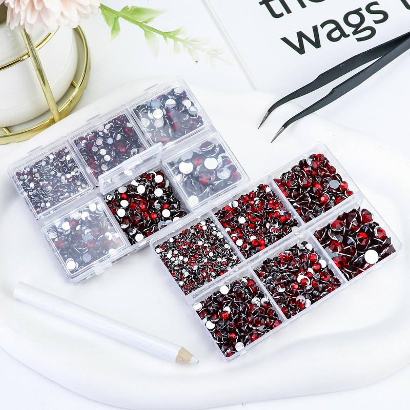 - 🎀 Package Content: 2 boxes of dark red resin flatback rhinestones, totally around 10000pcs, with 1 picker pencil and 1 pair of tweezers.