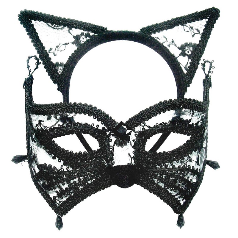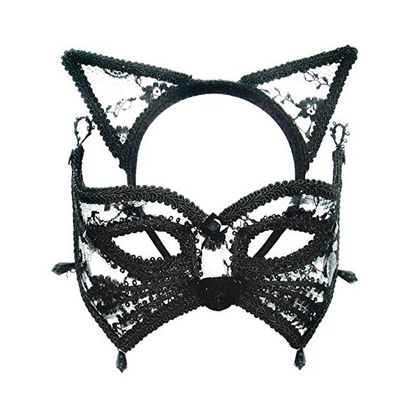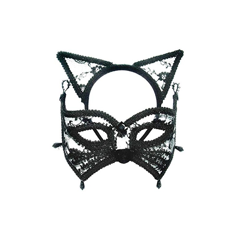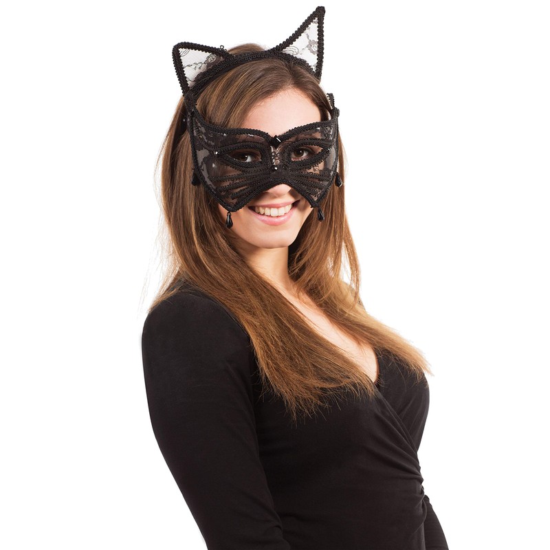 Bristol Novelty Cat Mask with Ears on Headband, PET, Polyester, Plastic Beads...