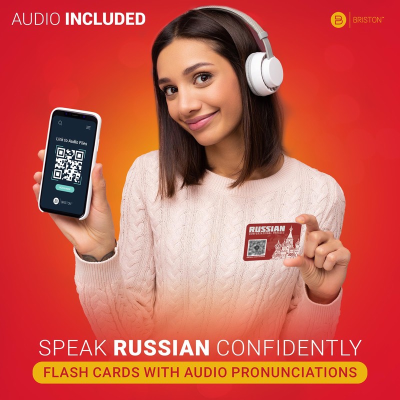 Briston Russian Phrase Cards with Phonetics, Russian Language Flashcards for Beginners Conversational Phrases Deck for Travel Study & Speaking Practice and Learning Aids