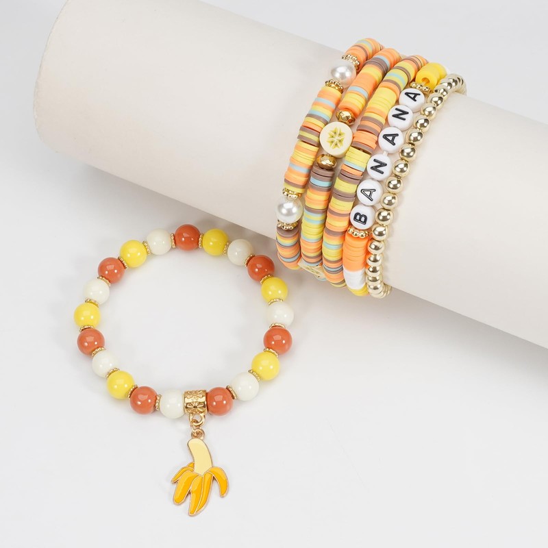 - Vibrant Summer Style: Featuring cheerful yellow and orange soft clay, these bracelets burst with sunny, tropical vibes, perfect for adding a pop of color to your everyday outfits. Lightweight and skin-friendly, they keep you comfortable all day, making them ideal for beach trips, picnics, or casual strolls in the warm weather.