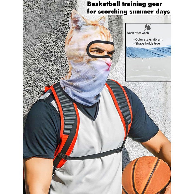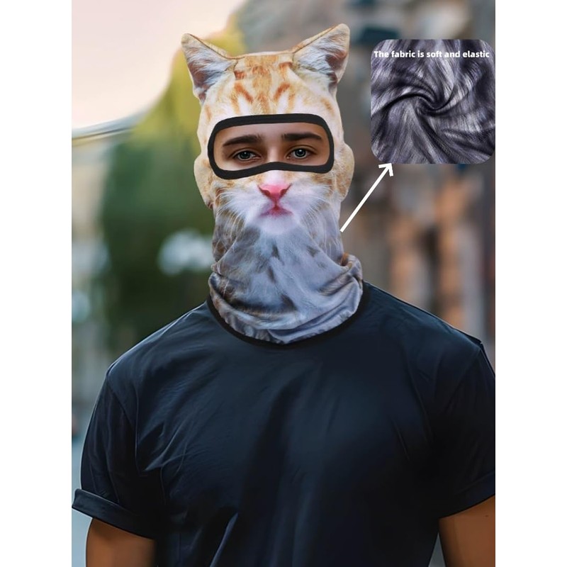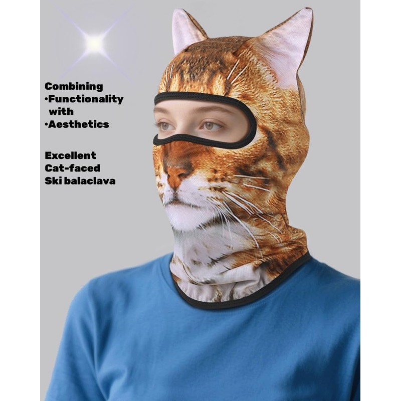 BRLETNNR Cat Mask 3D Printed Cat ski Mask Balaclava with Ears Breathable Perfect for Skiing & Biking Party with Solid Pattern (US, Alpha, Medium, BC+017)