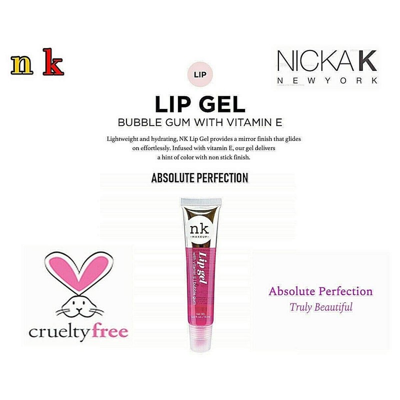 Lightweight and hydrating, NK Lip Gel provides a mirror finish that glides on effortlessly. Available in a variety of translucent shades, our gel delivers a hint of color with a non-stick finish. ANIMAL CRUELTY FREE :)