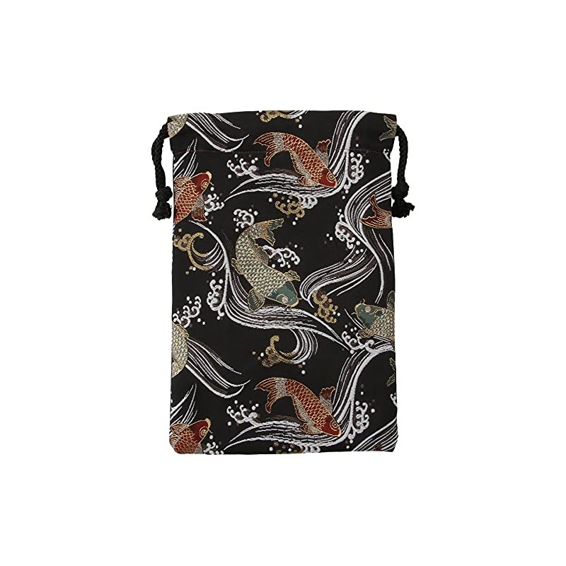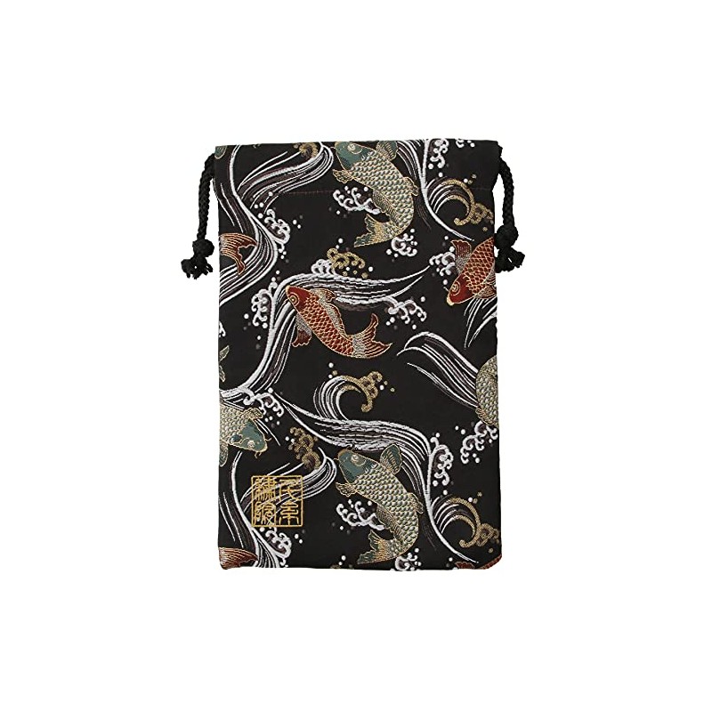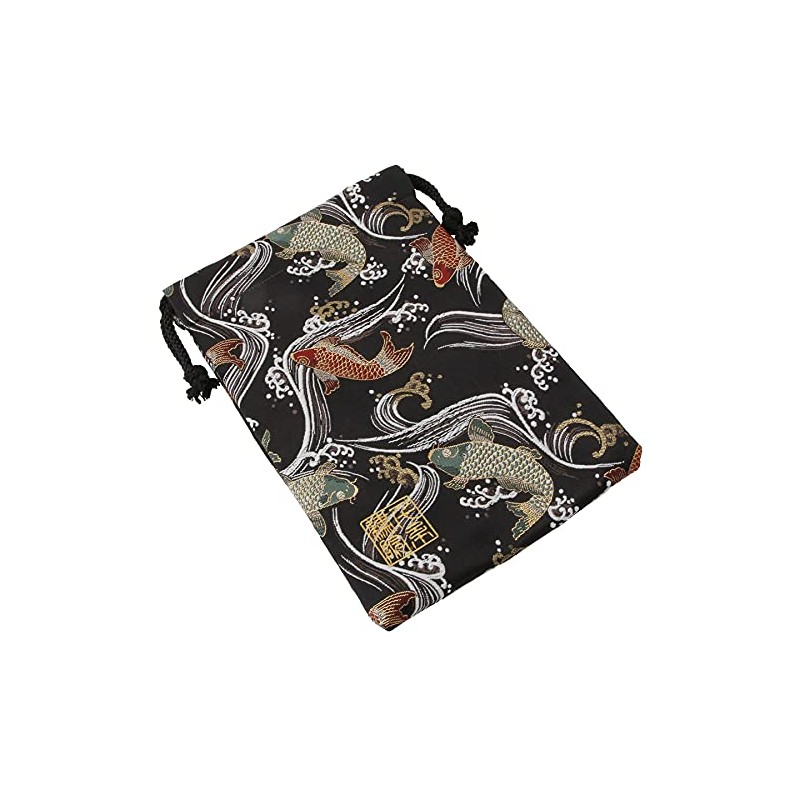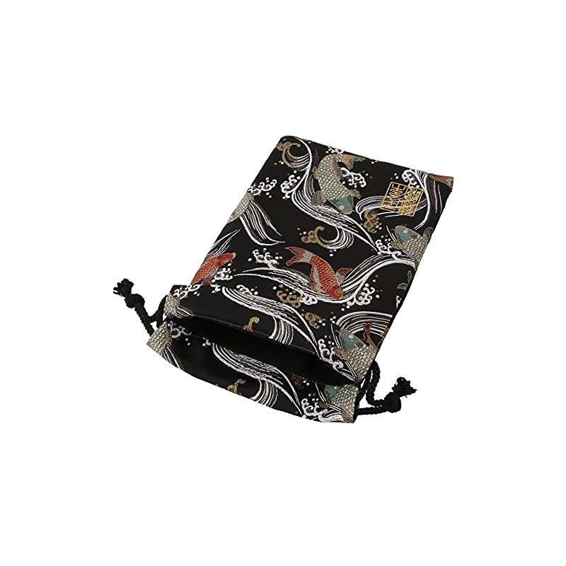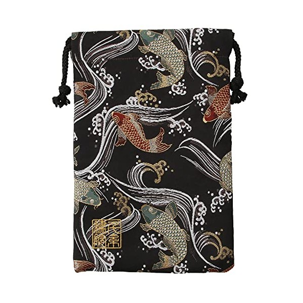 千糸繍院 Brocade drawstring bag, lined with Nishijin brocade, Kuroeigoi, size M., Black,red,green, Medium
