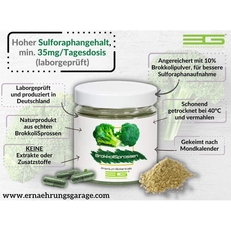 - 100% natural: our gentle manufacturing process is based on a lot of tests and series of tests and therefore guarantees long resistance of the sulforaphane (laboratory tested).