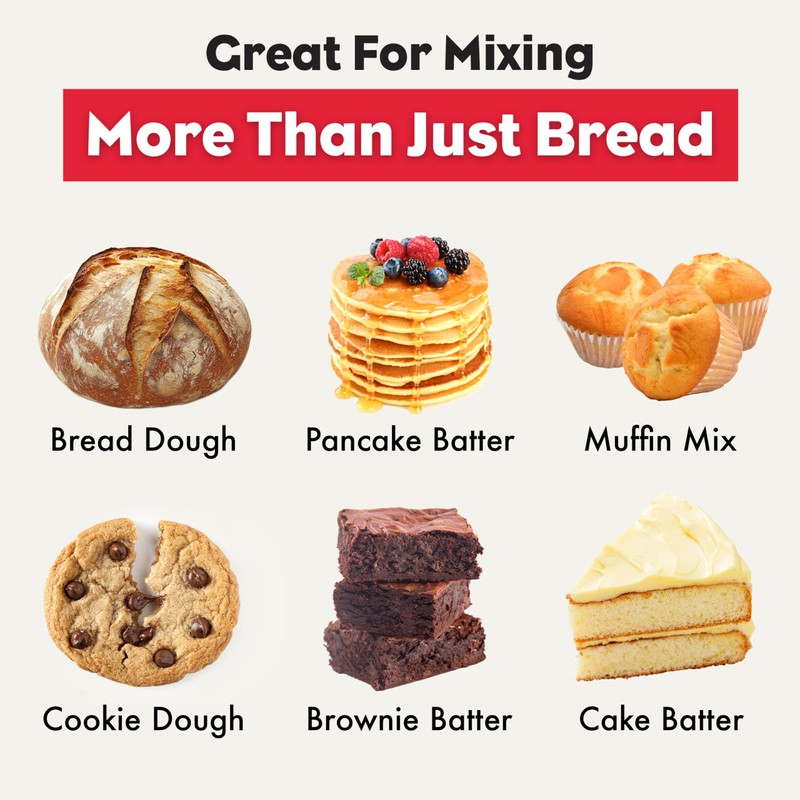 - Dishwasher safe, ultra-sturdy construction that is built to last. Extra-thick stainless steel powers through the stiffest doughs, batters, and more.