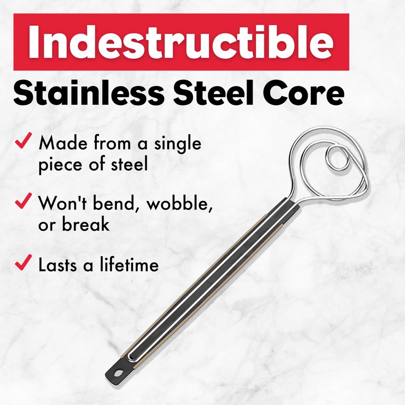 - The right mixing tool is essential when making bread or working with any ingredients that need to be combined quickly and effectively. Most dough whisks are made with an unstable handle attachment to the whisk wire, and these just don’t hold up over time.