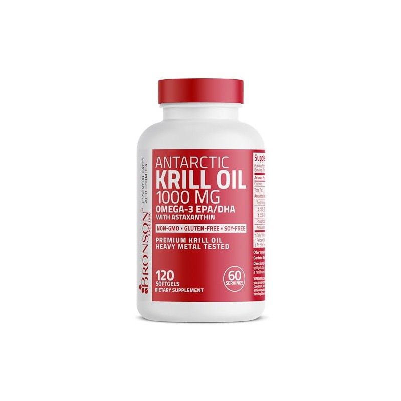 Bronson Antrtico Krill Aceite 1000 Mg Con Omega-3S Epa, Dha, Astaxantina Y Fosfolpidos 120 Cpsulas Blandas (60 Porciones)