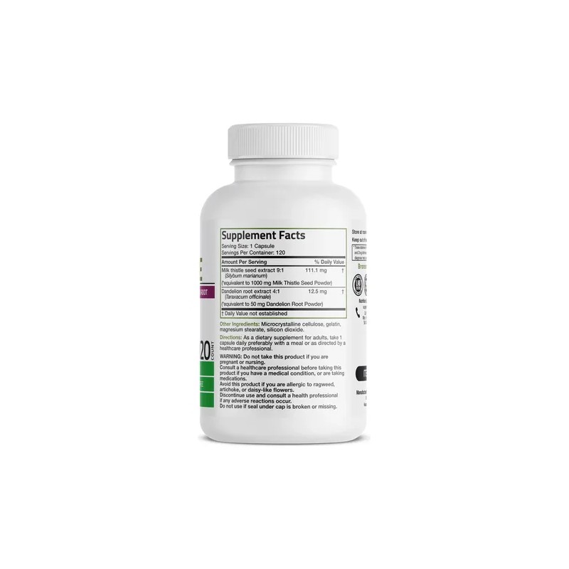 Bronson Cardo Mariano 1000mg con Silymarin y Diente de León Suplemento Hepático Antioxidante Sin OGM Sin Gluten 120 Cápsulas