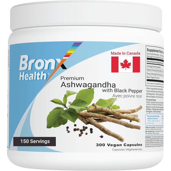 BRONX Ashwagandha Max Strength Supplement with Black Pepper 300 Vegan Capsules | High Potency | Helps Increase Energy |for Women and Men | Powder Pills | Bulk Format