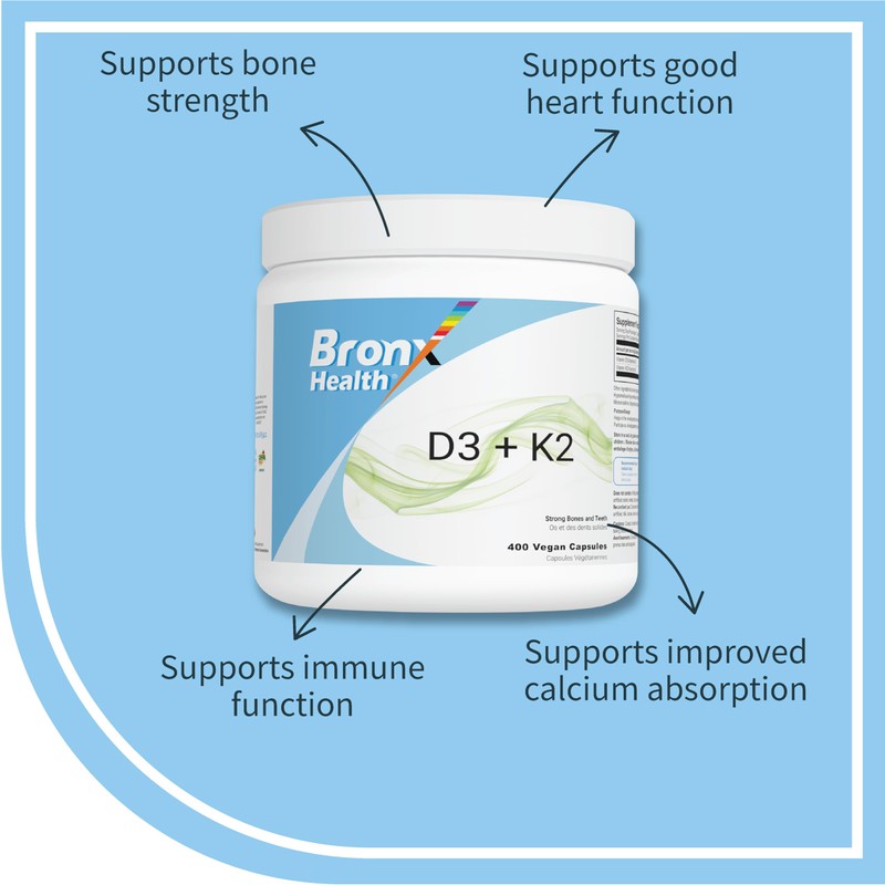 BRONX Vitamin D3 K2 (MK-7) High Potency 120MCG/1000 IU 400 Vegan Capsules | Supplement for Healthy Bones & Teeth | Powder Pills | Bulk Supplement