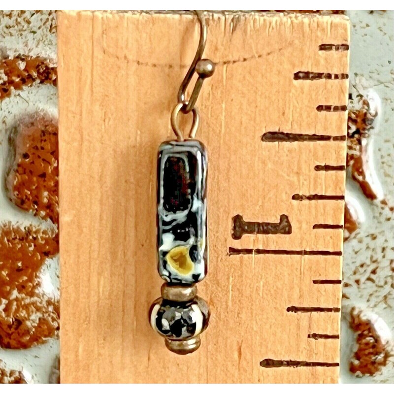 Bronze and Black Marbled Bead Earrings.