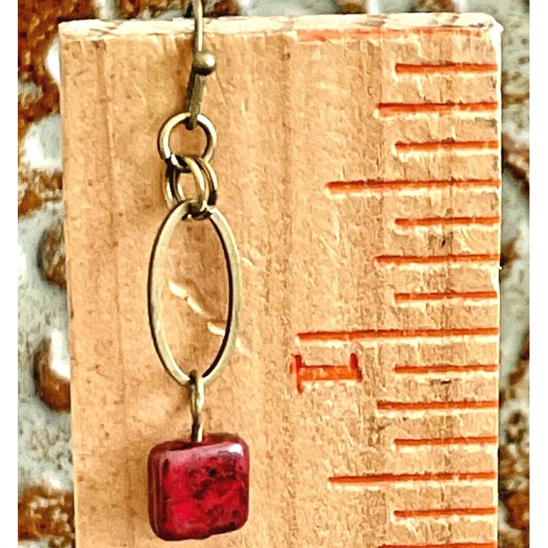 Bronze and Speckled Red and Gray Czech Bead Earrings.