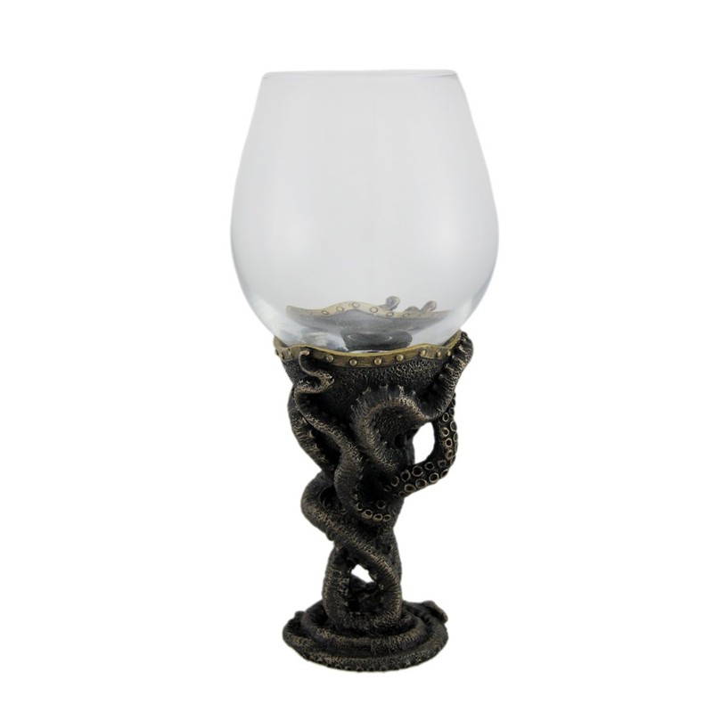 Bronze Finish Steampunk Deep Sea Diver Octopus Wine Glass