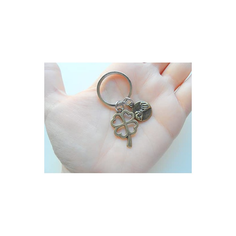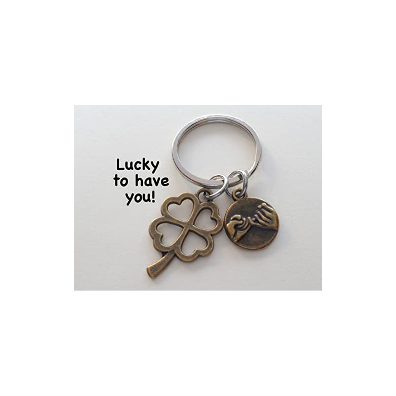 Bronze Four Leaf Clover Charm Keychain with Pinky Promise Charm for Couples or Best Friends, Anniversary Keychain