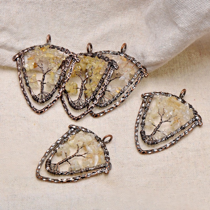 - A tree of life is wrapped in center of the shield, the tree is bronze wires twisted up, the branches of the tree are beaded with natural citrine crystal chipps