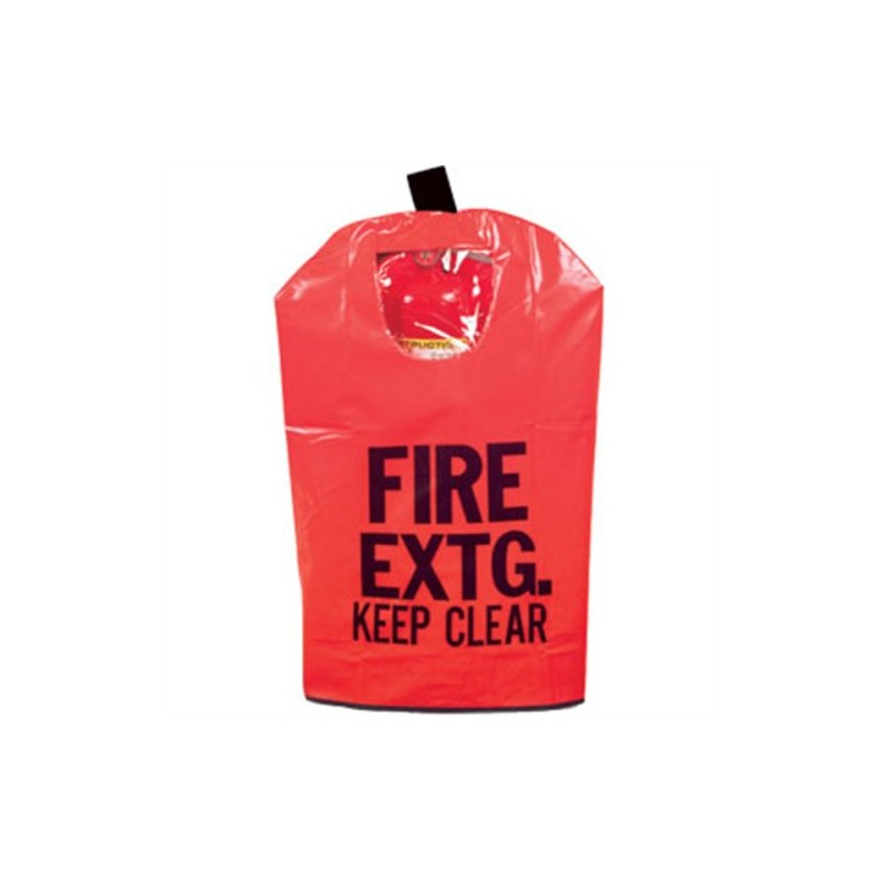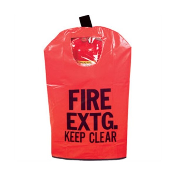 Extinguisher Covers are made of reinforced vinyl with hook-and loop closures and clearly labeled with large, black imprint and black trim. Covers fit portable, pressurized, and cartridge-operated extinguishers. Red.