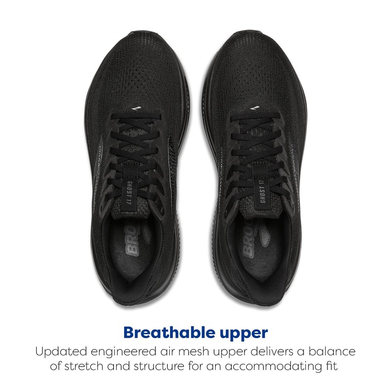 Brooks Men’s Ghost 17 Neutral Running Shoe - Black/Black/Ebony - 15 Medium