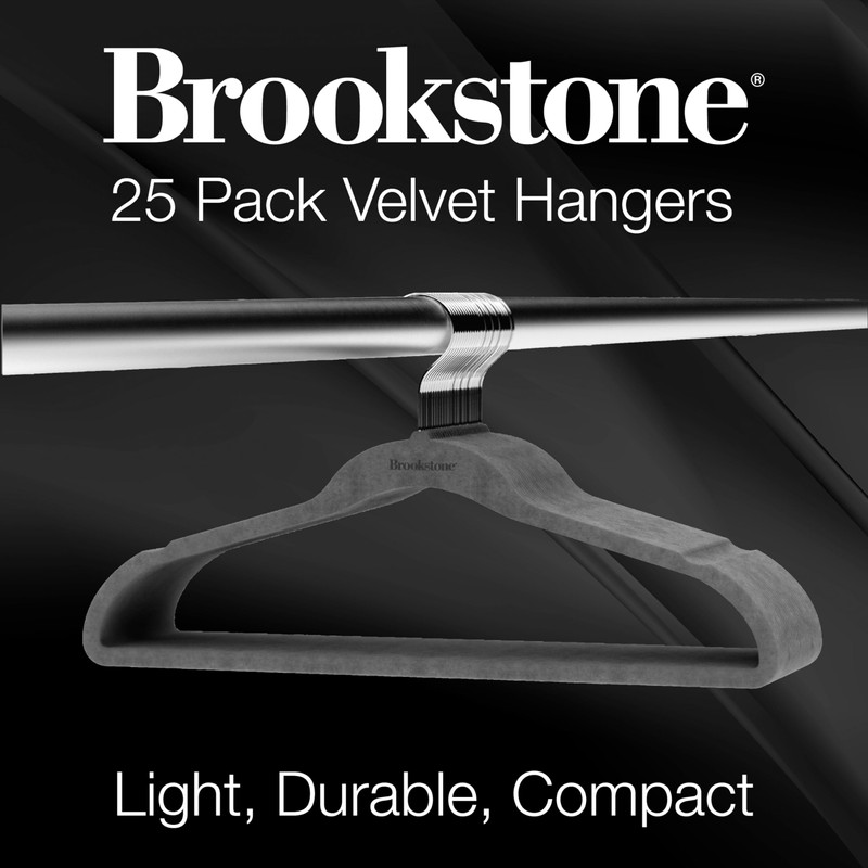 BROOKSTONE, [25 Pack] Velvet Hangers, [Non-Slip] 360° Swivel Hook, Lightweight & Slim, Strong & Durable, Space Saving Design, Heavy Duty, Won’t Stain Fabric