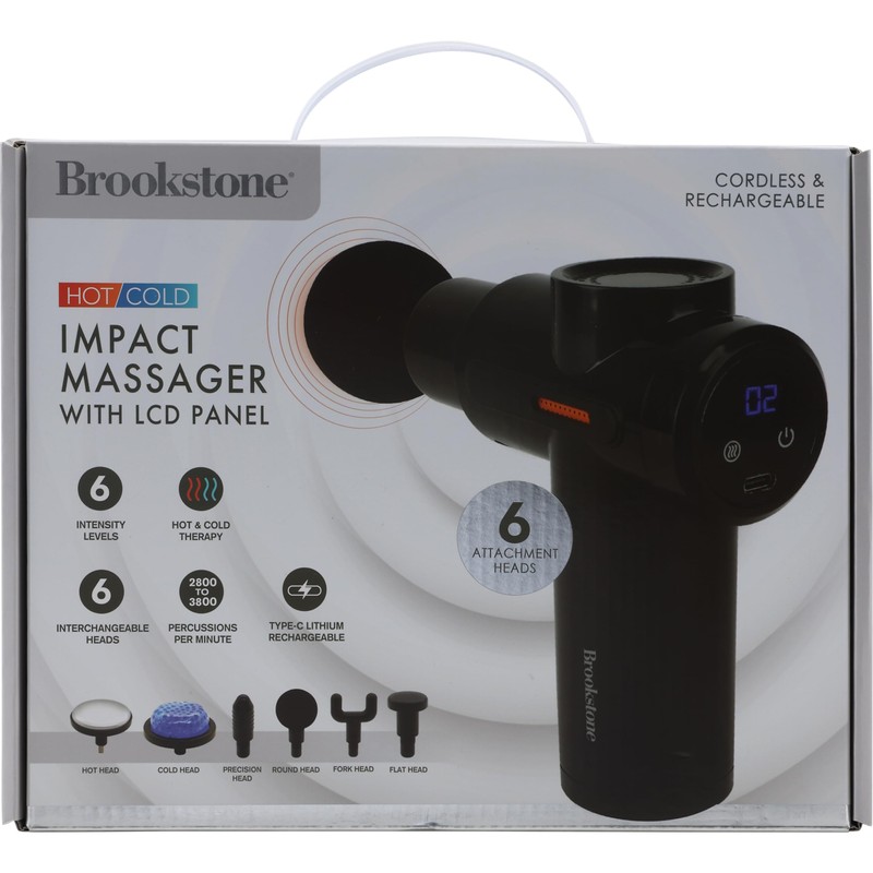 Brookstone - Percussion Massager, Cordless Handheld, Deep Tissue Muscle Relief, Portable, Rechargeable, Multiple Speeds (Grey)