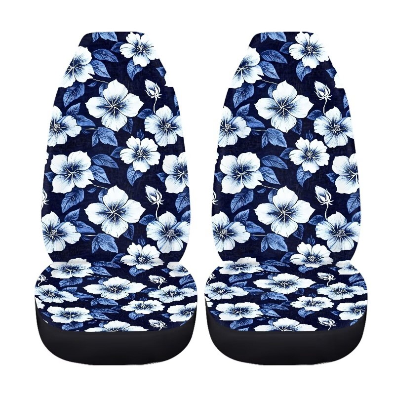 Brosoneto Hawaiian Hibiscus Car Seat Covers White Floral Tropical Flower 2-Pack Car Seat Accessories for Men Women Auto Interior Covers for Car SUV Sedan Truck