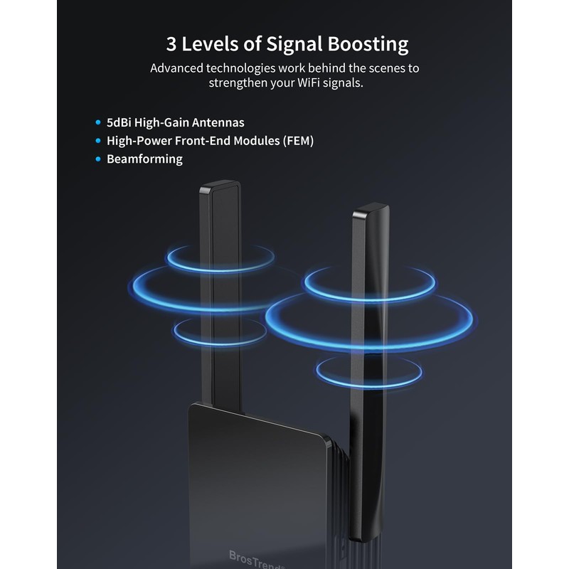 - Exceptional WiFi Signals: Beamforming technology, 2 high-power Front-End Modules, and 2 high-gain antennas combine to boost your coverage, regardless of your house layout. This WiFi extender concentrates consistent signal strength toward your devices