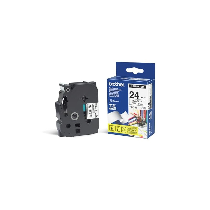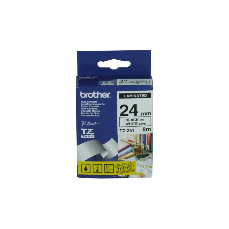 Brother TZ251 2.4cmx8m Laminated Tape Roll - Black on White