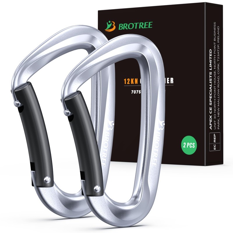 Brotree Carabiner with 1200 kg Load Capacity, Carabiner Hook with Keyring / Screw-Lock Configuration, Heavy Duty Screw-Lock Carabiner for Hammocks, Camping, Hiking, Fishing & More