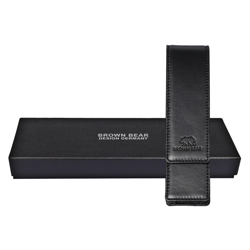 BROWN BEAR Leather Writing Instrument Case for 2 Pens, 011 black with magnetic closure, Writing instrument case for 2 pens