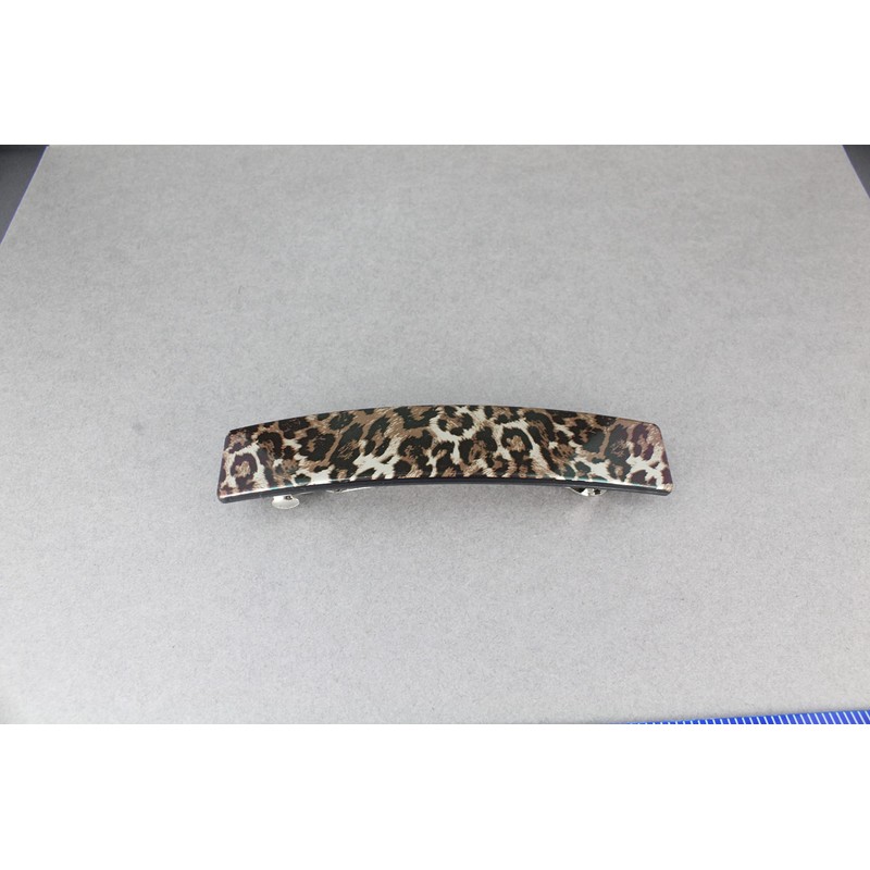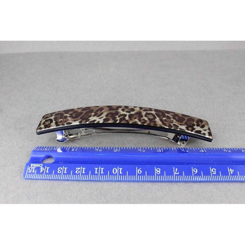 Brown Black Cream cheetah leopard print barrette plastic rectangle hair clip accessory 4.25 inches long