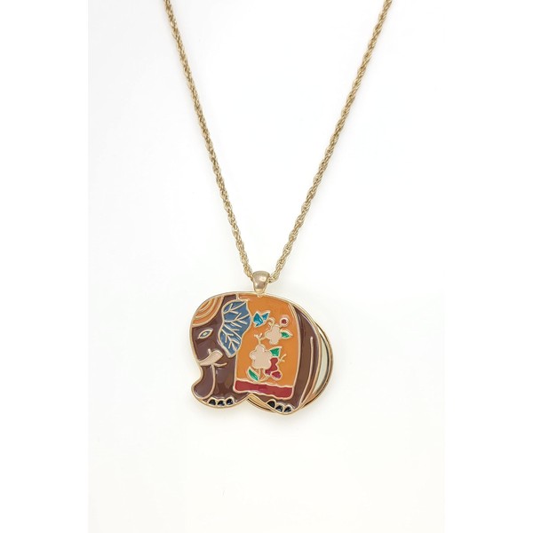 Brown Elephant Pendant Necklace with Magnifier Reading Lens