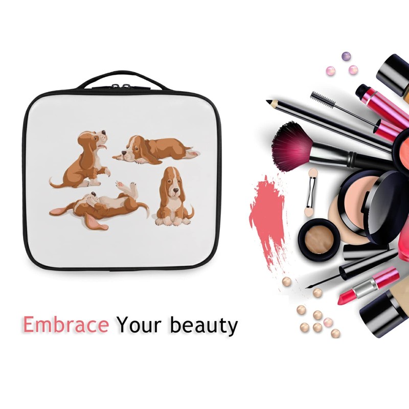 Brown Hand Drawn Basset Hounds Cute Puppies Isolated on White Large Women Makeup Bag, Train Toiletry Storage Case, Portable Coin Purse Holder Zipper Pouch Travel Cosmetic Organizer for Women and Girls