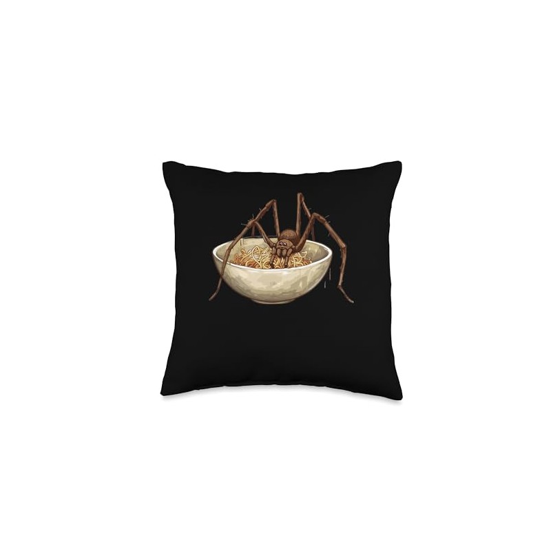 Brown Recluse Spider Eating Ramen Throw Pillow