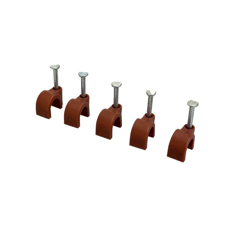 Tough PE clip, elasticity and shock resisting High impact nail attached Suggested Fixing Method Ensure that correct size of clip is selected to fit the cable being fixed. When fixing long cables- support the cable temporarily first. Hammer the clips nail gently ensuring it enters the surface at a 90˚ angle