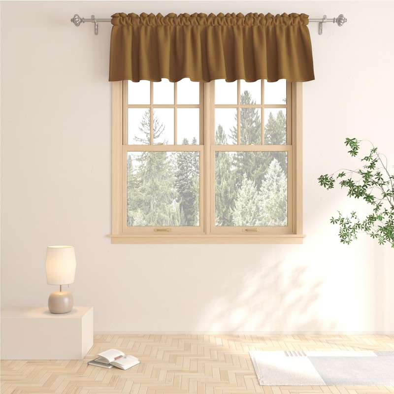 Brown Valance Curtain Blackout 16 inches Long Living Room Darkening Short Little Mini Small Curtain Topper Rod Pocket Triple Weave Bathroom Bedroom Kitchen Window Curtain Over Sink Valance 1 Panel