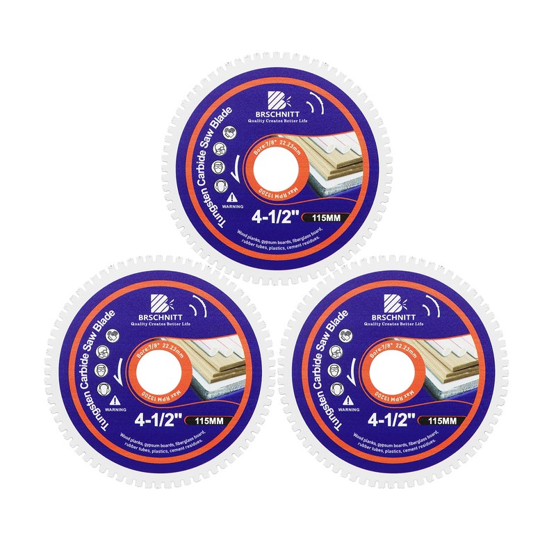 BRSCHNITT Tungsten Carbide Wood Blade 4.5inch - Wood Cutting Disc Arbor 22.23mm for Wood with Nails,Laminate,Plastic,Glass Fibre Boards,Rubber Tubes,Cement residues.(3pcs)