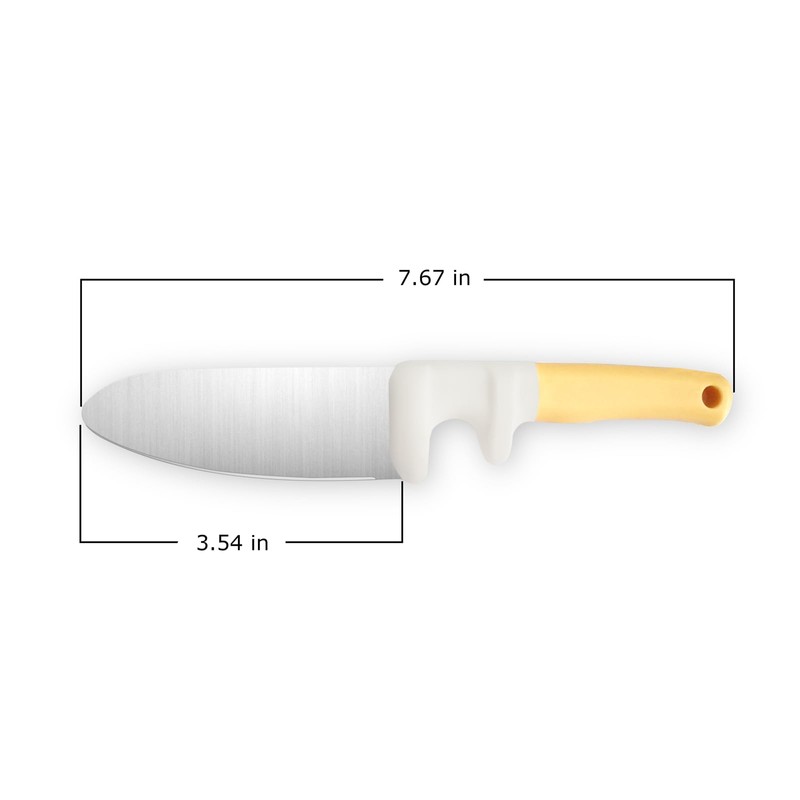 - 【Dual Safety Protection】The stainless steel blunt tip and finger guard work together to minimize cutting risks while allowing precise food preparation. Insert the index finger and middle finger into the finger sleeve positions on the knife sheath, and it will protect the fingers like a small shield.Perfect for supervised learning in the kitchen.