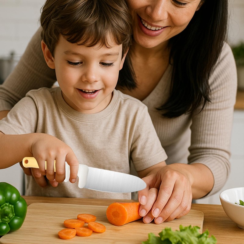 - 【Real Cutting Experience】Our stainless steel blunt-tip blade is designed for actual kitchen tasks, enabling kids to safely slice fruits, vegetables, and bread. Unlike plastic toy knives, this set provides hands-on practice for real cooking skills.