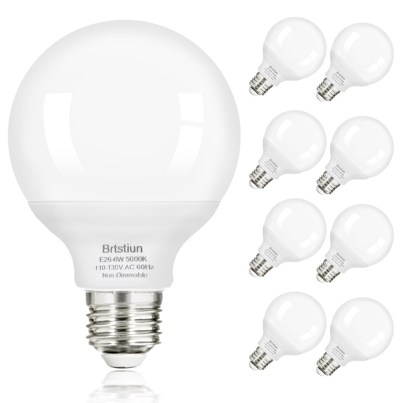 Brtstiun G25 LED Light Bulbs, Round Vanity Light Bulbs for Bathroom, 40W Equivalent, Daylight White 5000K, E26 Base Globe Light Bulbs, 600LM, Non-Dimmable, 8-Pack