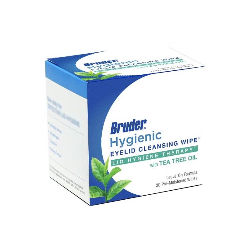 Bruder Hygienic Eyelid Cleansing Wipes with Tea Tree Oil (TTO) feature 4-Terpineol, a TTO extract, supports relief Demodex, Dry Eye, Blepharitis and Meibomian Gland Dysfunction (MGD) while also improving lid hygiene. The wipes gently exfoliate and remove excess oils and debris from eyelids and lashes.