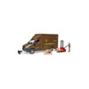 Pioneering, efficient, reliable this is how Mercedes Benz describes the new Sprinter. The latest generation Sprinter continues to be the versatile and popular transport professional. BRUDER֒s extensive range includes the latest sprinters in a wide range of designs. UPS, one of the world's leading shipping service providers, also relies on Sprinters as delivery vehicles. This vehicle dominates today's city streets and has now been added to the BRUDER range. The vehicle features a two-part rear door that can be opened up to the limit stop on the body of the vehicle. Remove small items through the side door to save time. The vehicle's accessories include a manual pallet jack and two Euro pallets to load or unload heavy and/or bulky goods. This great set is rounded off by a UPS driver wearing the company's typical uniform. Typical UPS shipping boxes in different sizes are also included.