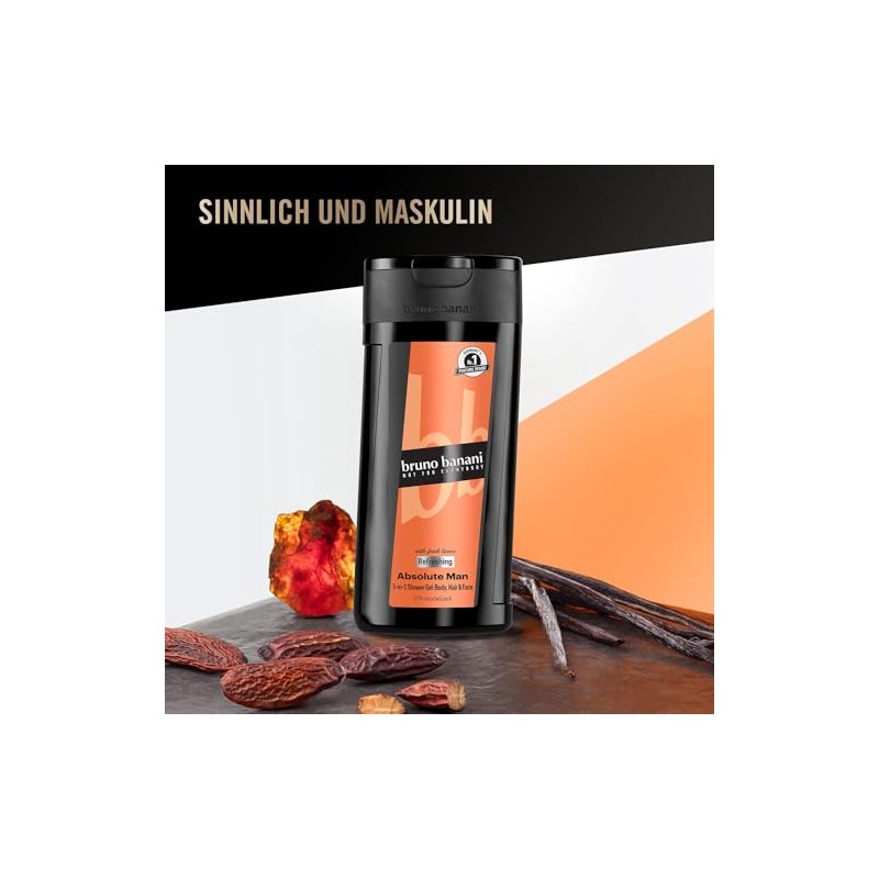 • bruno banani Absolute Man – der sinnlich-maskuline Männerduft als 3-in-1 Shower Gel für Körper, Gesicht und Haare.