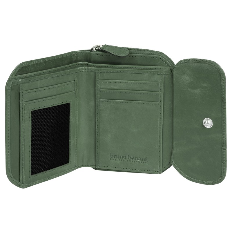 bruno banani Genuine Leather Women's Slim Wallet, Lightweight Wallet, 2 Card Compartments, All-Round Zip, 021857, Green, Casual