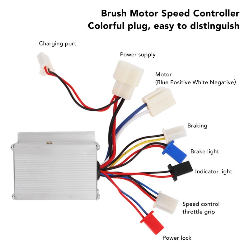 1、Fitment: The brush motor speed controller rated voltage is DC24V, rated power is 250W and the operation sound is small. 2、Material: The motor speed controller shell is made of aluminum alloy material, which can protect the internal circuit and avoid thermal overload. It has good heat dissipation. 3、Function: Motor speed controller allows you to start more smoothly, ride more comfortably, and ensure your driving safety. 4、Wide Application: Suitable for wind turbine scooters, mini dolphin scooters, electric motorcycle, electric bike and more machine equipment etc. 5、Easy Installation: Just replace directly. The installation is convenient, it will not destroy any position of the original car, and will not affect any system of the original car.